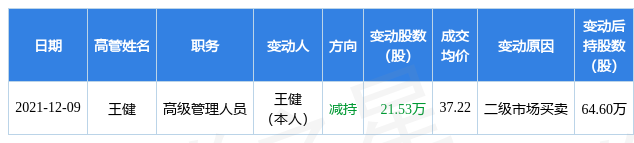该股近半年内有高管持股变动,共计减持21.53万股,高管增减持明细如下表: